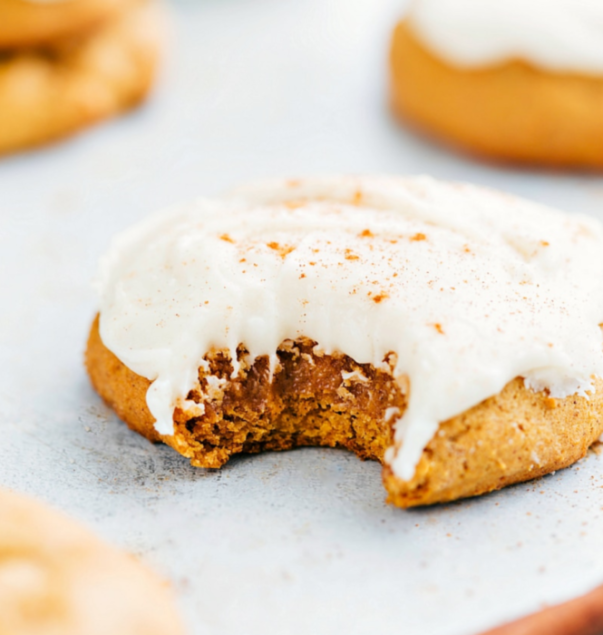 Generously frost the completely cooled cookies and if desired, sprinkle the tops of the cookies with a little extra pumpkin pie spice.